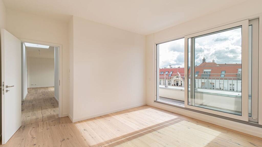 Die hier zum Verkauf angebotene Dachgeschosswohnung wurde 2023 fertiggestellt und befindet sich im 4.OG des Vorderhauses in der WollankstraĂźe.
