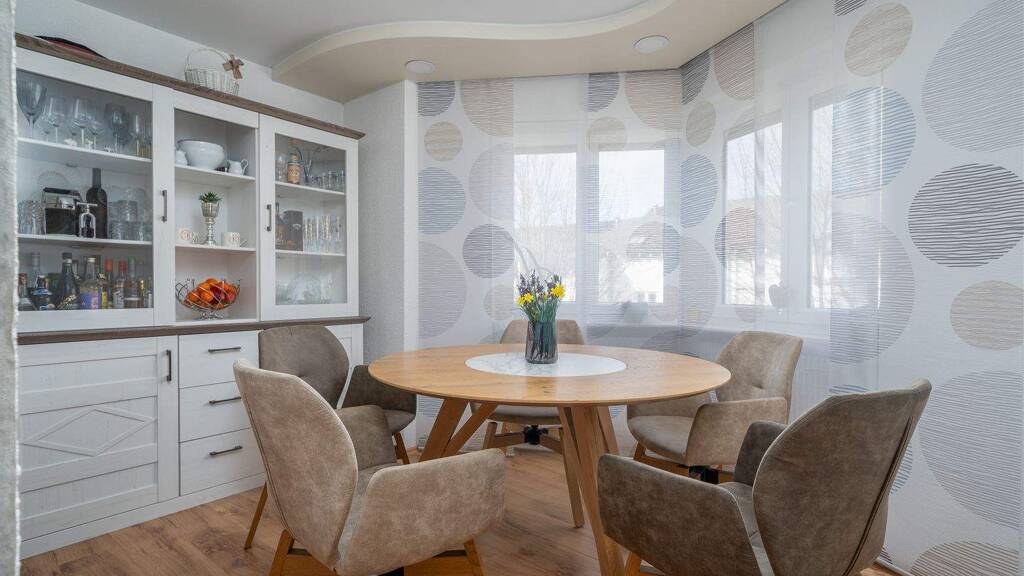 Renovierung / Modernisierung: Heizkörper in 2010 neu lackiert erneuert Türblätter und -zargen in 2010 komplett erneuert (Farben weiß mit Rillung) Markise in 2010 neu angebracht, elektrisch aus- und einfahrbar Fenster in 2010erneuert (Schüco Kunstofffenster 3-fach verglast) Bodenbelag in 2010 neu verlegt: Laminatboden (Holzoptik) in Flur, Wohn, Ess- und Schlafräumen Alle Steckdosen & Schalter erneuert