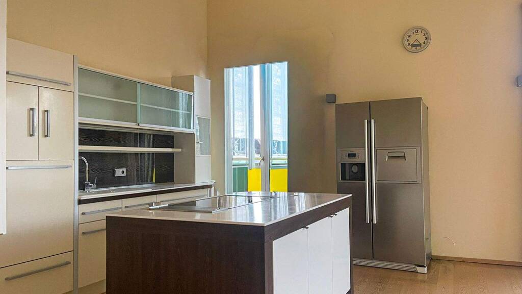 Der offene und lichtdurchflutete Wohnbereich wird durch eine moderne Einbauküche mit hochwertigen Einbaugeräten sowie einem amerikanischen Kühlschrank ergänzt, die bereits im Kaufpreis inkludiert ist und keine Wünsche offenlässt.