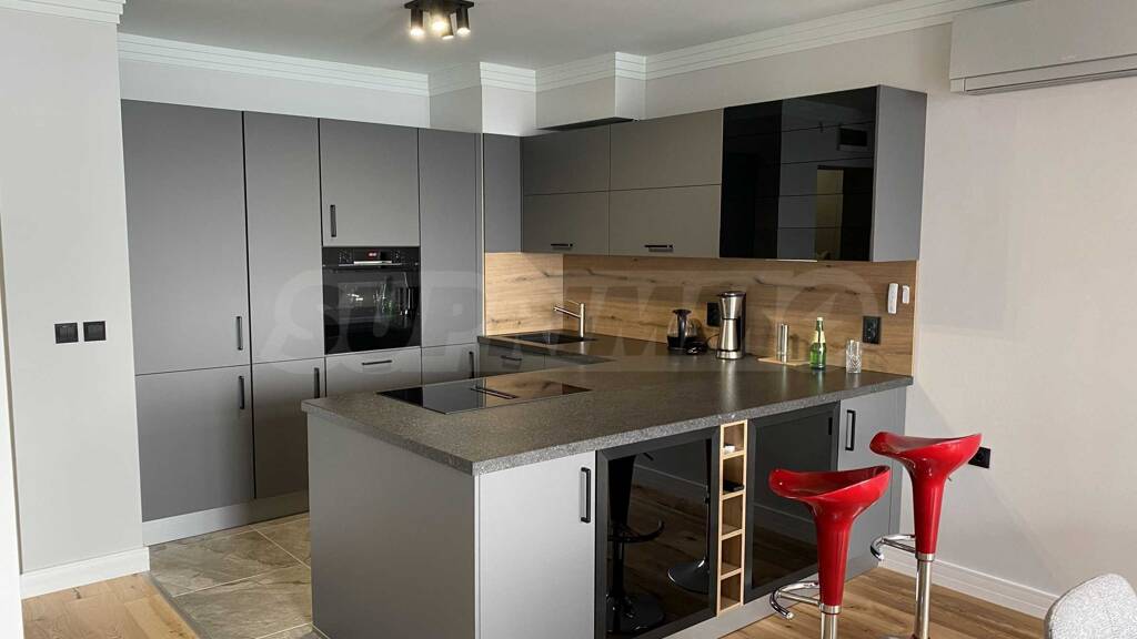 Das Anwesen befindet sich im 5. Stock und bietet einen Blick auf das Meer und die Altstadt von Nessebar von der Südseite und von der Nordseite des Anwesens - auf die Hügel von Stara planina. Die 120 qm große Wohnung besteht aus einem Wohnzimmer mit moderner Küche, einem Schrank, einem Flur, einer Toilette, einem Badezimmer/WC mit Duschkabine, zwei komfortablen Schlafzimmern.