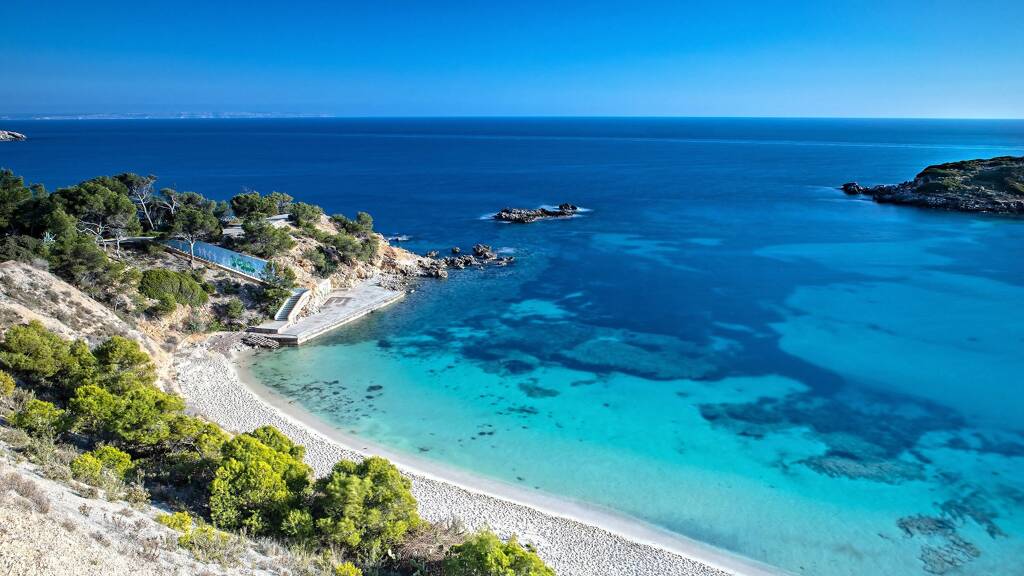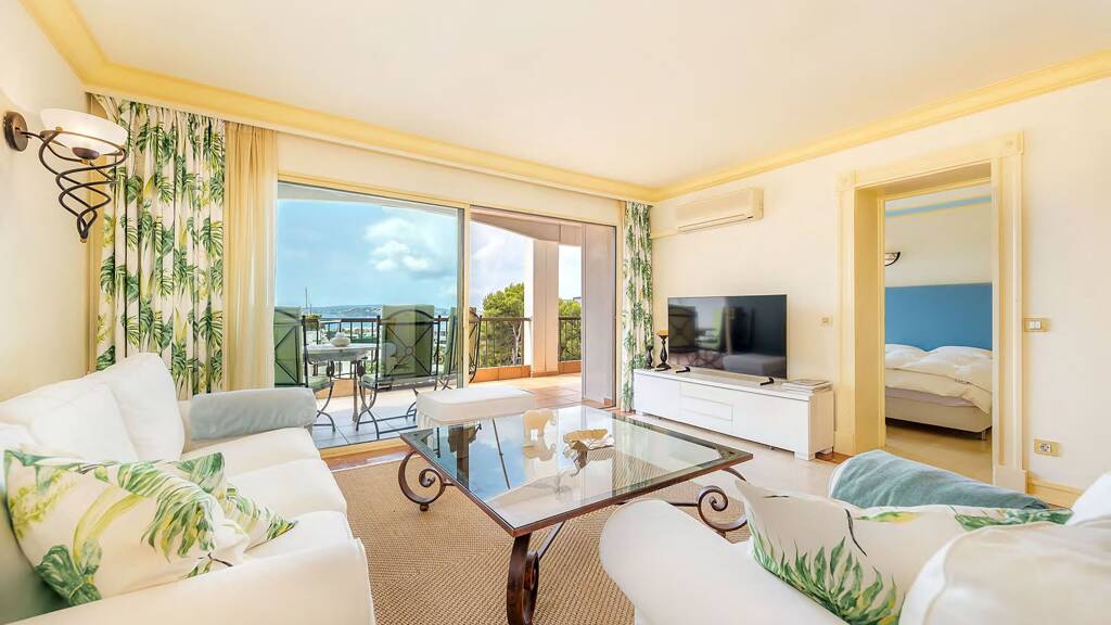 Modernes Apartment mit traumhaftem Blick auf das Meer in einer exklusiven Wohnanlage mit Pool nahe des Hafens von Portals Nous.