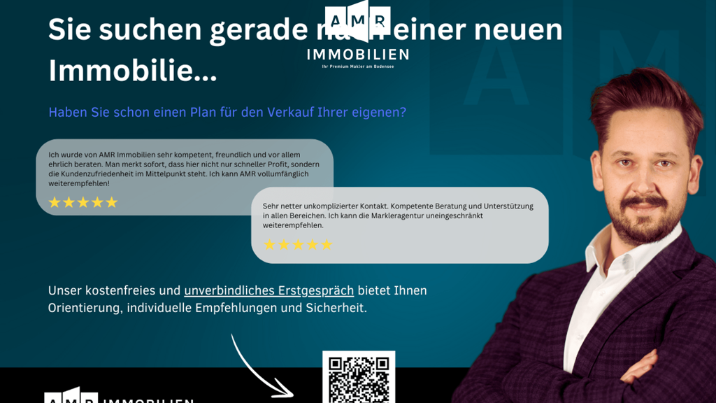 Die in unseren Angeboten und Exposés enthaltenen Informationen dienen ausschließlich Informationszwecken und stellen keine vertragliche Zusicherung dar. Vertragsgrundlage ist ausschließlich der schriftlich abgeschlossene Kaufvertrag. AMR IMMOBILIEN übernimmt darüberhinaus keine Gewähr für die Richtigkeit und Vollständigkeit der zur Verfügung gestellten Informationen. Diese Informationen stammen von Dritten, wie Verkäufern oder Vermietern, und können sich jederzeit ändern. Jegliche Haftung für die Richtigkeit, Vollständigkeit oder Aktualität der bereitgestellten Informationen wird ausdrücklich ausgeschlossen, sofern seitens des Immobilienmaklers kein nachweislich vorsätzliches oder grob fahrlässiges Verschulden vorliegt.