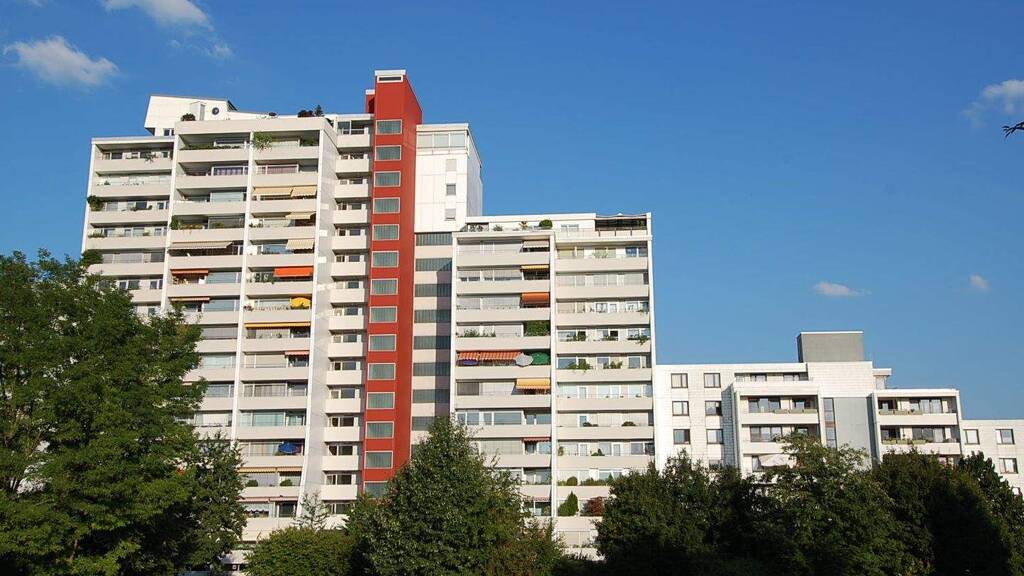 Die "Apollo"-Hochhaus-Anlage wurde ca. 1972, altersgerecht, massiv und mit Flachdächern erbaut; ist 2-fach unterkellert und verfügt im Untergeschoss über eine Tiefgarage, Abstellräume sowie ein Schwimmbad (20-Meter Becken) mit Sauna.