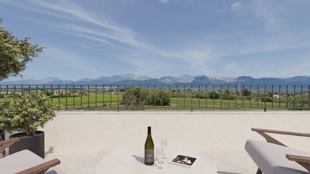 Im ersten Stock befinden sich drei Schlafzimmer, zwei Badezimmer und eine Waschk?che, darunter ein Hauptschlafzimmer mit eigenem Bad. Von dieser Ebene aus ist die Dachterrasse zug?nglich, die einen atemberaubenden Blick auf die Serra de Tramuntana bietet und das ganze Jahr ?ber ein perfekter Ort ist, um die Sonne zu genie?en.