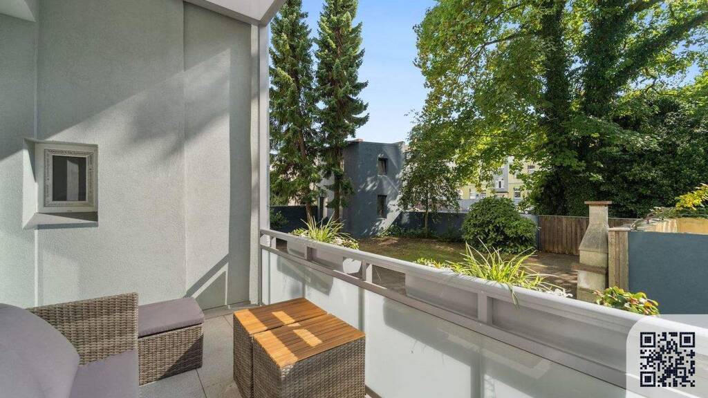 Dieses geschmackvoll eingerichtete Apartment verfügt über einen offenen Wohn- und Essbereich, der von großen Fenstern mit Licht durchflutet wird. Es umfasst eine voll ausgestattete Küche, ein gemütliches Wohnzimmer, ein einladendes Esszimmer und ein Badezimmer mit Badewanne. Die Küche führt direkt zu einem Balkon mit bequemen Sitzgelegenheiten und Blick ins Grüne. Ein geräumiges Sofa und ein Flachbildfernseher bieten den perfekten Ort zum Entspannen. Der Essbereich umfasst einen hochwertigen Holztisch und stilvolle Hängelampen, die eine gemütliche Atmosphäre für Mahlzeiten schaffen. Das Schlafzimmer ist minimalistisch und dennoch gemütlich, mit moderner Beleuchtung. Dunkle Nachttische und ein großer Schrank bieten viel Stauraum.