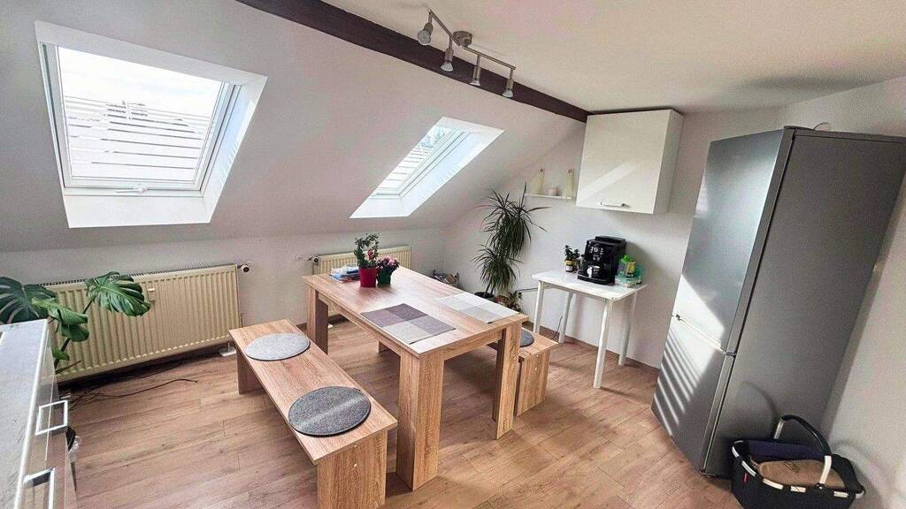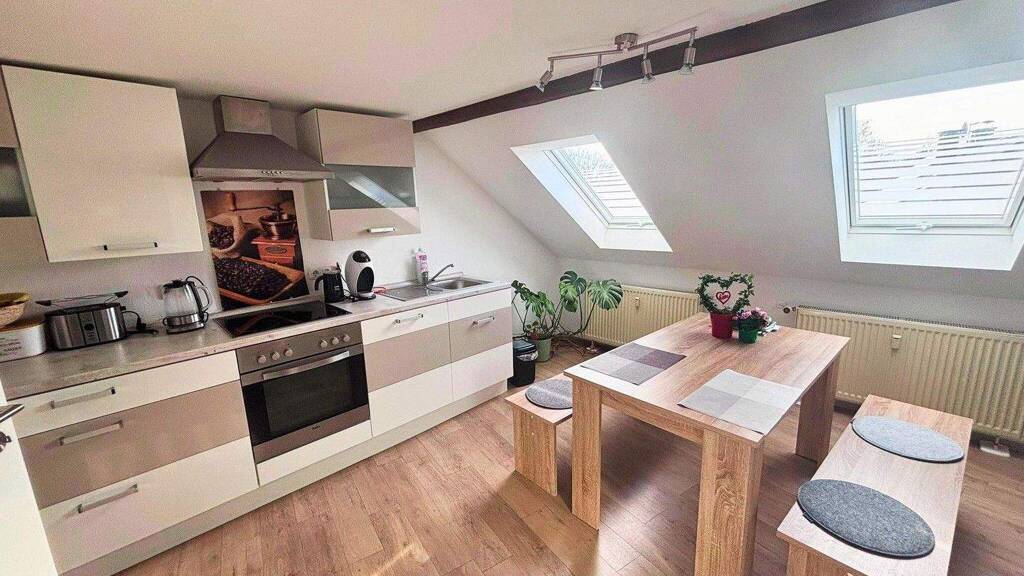 Diese wunderschöne und helle Dachgeschosswohnung bietet auf 132 m² viel Platz zum Wohlfühlen. Die Wohnung verfügt über vier Zimmer, darunter ein Schlafzimmer und zwei Kinderzimmer, sowie eine separate Küche und ein Badezimmer mit Badewanne.