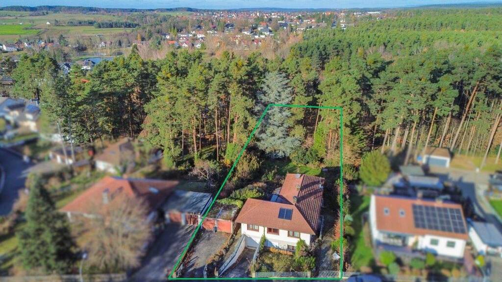Am Ende einer ruhigen Sackgasse und unmittelbar direkt am Waldrand gelegen, präsentiert sich dieses Einfamilienhaus aus dem Jahr 1969 als außergewöhnliche Gelegenheit für Naturliebhaber. Das Anwesen steht auf einem beeindruckenden Grundstück von ca. 1.735 m², das sich bis in ein kleines eigenes Waldstück hinein erstreckt - ein Naturjuwel mit absolut unverbaubarem Blick ins Grüne. Hier verschmelzen Privatsphäre, Weite und Ruhe zu einem Wohngefühl, das man nur selten findet.