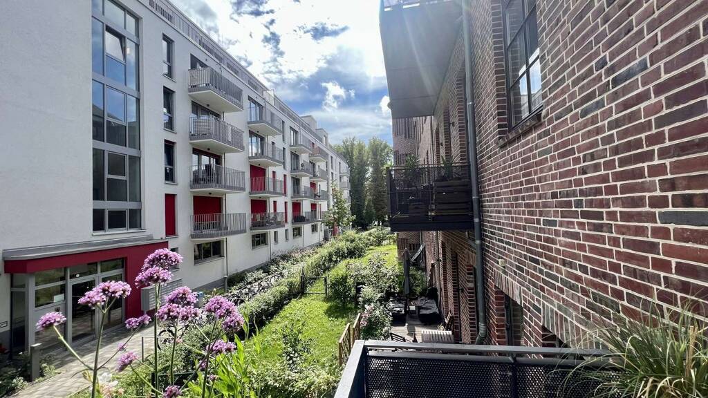 Die Wohnung beherbergt zwei gemütliche Schlafzimmer und ein Badezimmer, während ein geräumiger Wohnbereich zusätzlichen Komfort für Sie und Ihre Gäste bietet und zum Entspannen einlädt. Ein Highlight ist der Balkon, der zum Entspannen und Genießen einlädt und einen Blick auf den 48 Quadratmeter großen Garten mit Süd-Ost Ausrichtung freigibt. Hier können Sie die warmen Sonnenstrahlen in privater Atmosphäre genießen und sich vom Trubel der Stadt zurückziehen.