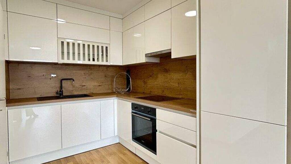 Das offen gestaltete Vorzimmer bietet ausreichend Platz für eine Garderobe sowie zusätzlichen Stauraum. Der großzügige Wohn- und Essbereich überzeugt mit einer modernen, stilvollen Küche in Grau-Weiß, die mit allen Geräten des heutigen Standards ausgestattet ist. Hier finden sowohl eine gemütliche Wohnlandschaft als auch ein Esstisch problemlos Platz.