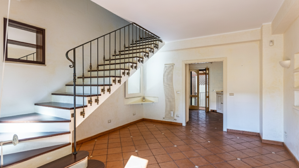 Die Innenräume sind mit hochwertigen Materialien ausgestattet, darunter Holz- und Terrakottaböden, die den Großteil der Räume prägen. Die Fenster und Türen sind teilweise mit Hausautomationssystemen für die automatisierte Steuerung ausgestattet, was die Effizienz und den Wohnkomfort verbessert.