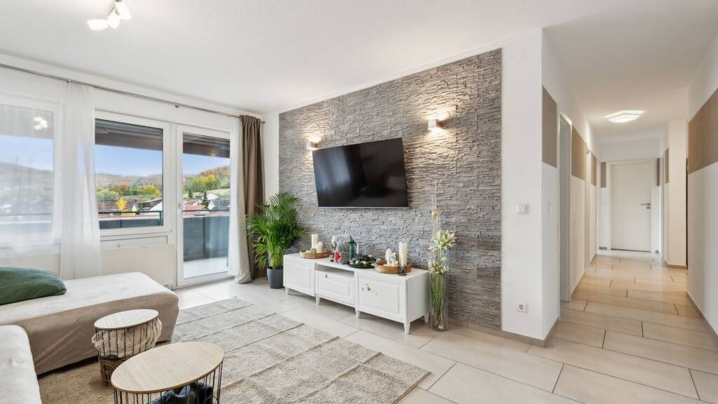 Luxuriöse 4-Zimmer-Wohnung mit großem Balkon, offener Wohnküche und Gartenmitbenutzung in Kuchen