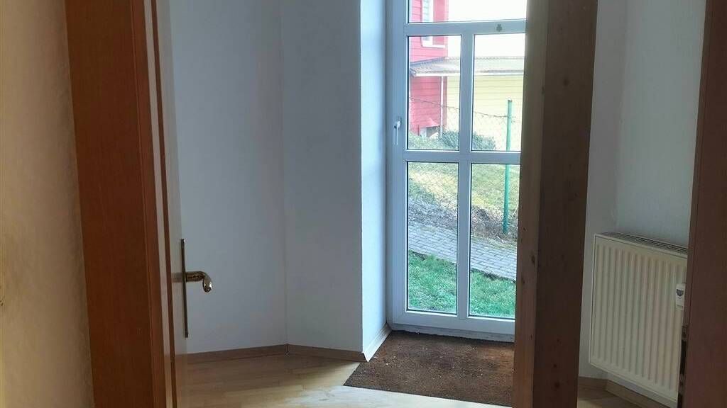 Die folgende Tür führt in ein weiteres Zimmer, das vielseitig nutzbar ist - als Arbeitszimmer, Gästezimmer oder Kinderzimmer. Von hier aus hat man einen direkten Zugang zum Garten, was diesen Raum zu einem besonderen Highlight macht.