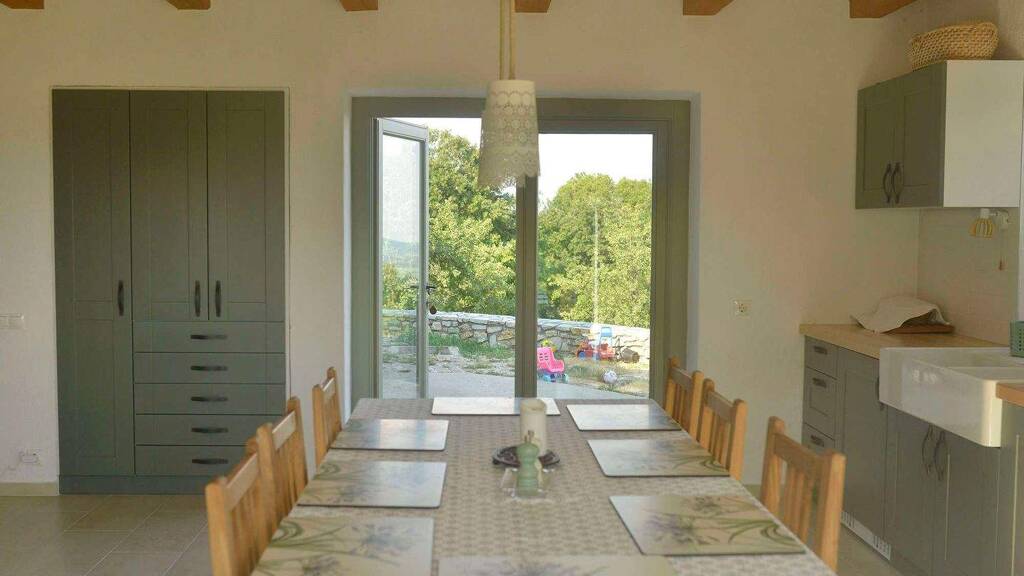 Das Wohnhaus mit 111 m2 Nettofläche (Erdgeschoss und Dachgeschoss) befindet sich auf einem 6.621 m² großen Grundstück. Es verfügt über ein großzügiges Wohnzimmer, Küche, Essbereich, zwei Badezimmer, drei Schlafzimmer, Technikraum sowie eine große Terrasse mit traumhaftem Fernblick. Ein Gewölbekeller ergänzt das Angebot. Die Beheizung erfolgt über einen Holzvergaser-Kessel mit Fußboden- und Radiatorheizung, ergänzt durch einen traditionellen Ofen und Herd. Die Warmwasserversorgung wird saisonal durch Sonnenkollektoren unterstützt. Für pure Entspannung sorgen eine separate Panoramasauna mit Holzfeuerung sowie ein Badefass – abgeschieden und dennoch komfortabel.