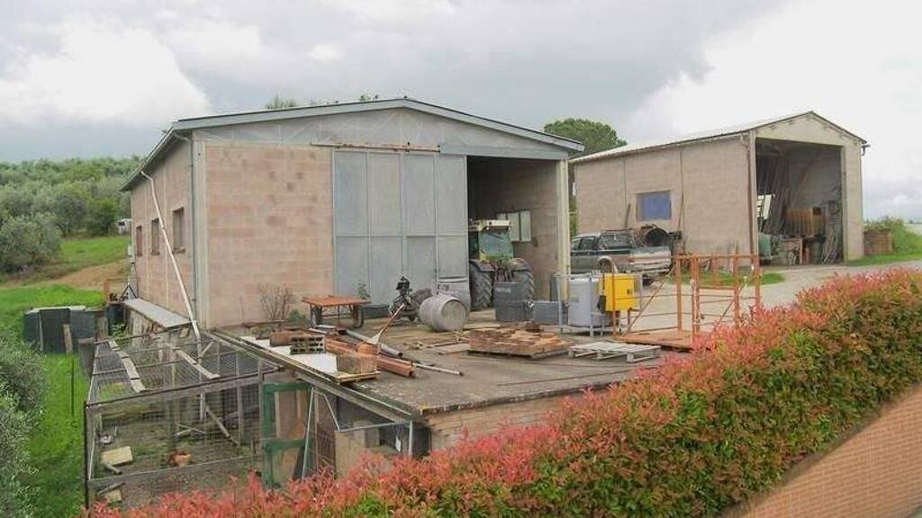 Das Hauptbauernhaus, ca. 270 qm, ist in zwei Wohnungen im ersten Stock und Abstellräume und Lager im Erdgeschoss unterteilt. Auf dem Bauernhof befinden sich vier Schuppen für die Lagerung von Maschinen mit einer Gesamtfläche von ca. 600 qm. Das landwirtschaftliche Anwesen ist mit einer breiten Palette von Maschinen ausgestattet, darunter 7 Traktoren, ein Mähdrescher, ein Bagger, verschiedene Anhänger für den Transport von Trauben und Oliven, Fräsen, Pflüge, Eggen und andere wichtige landwirtschaftliche Geräte.
