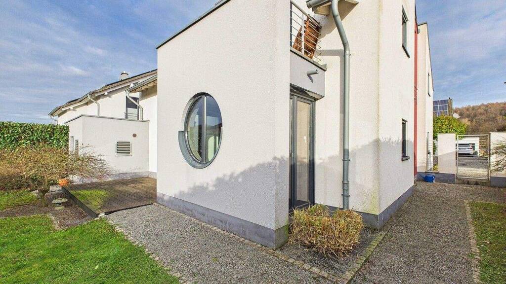 Ein markantes Rundfenster mit Blick ins Grün setzt zudem einen architektonischen Akzent.