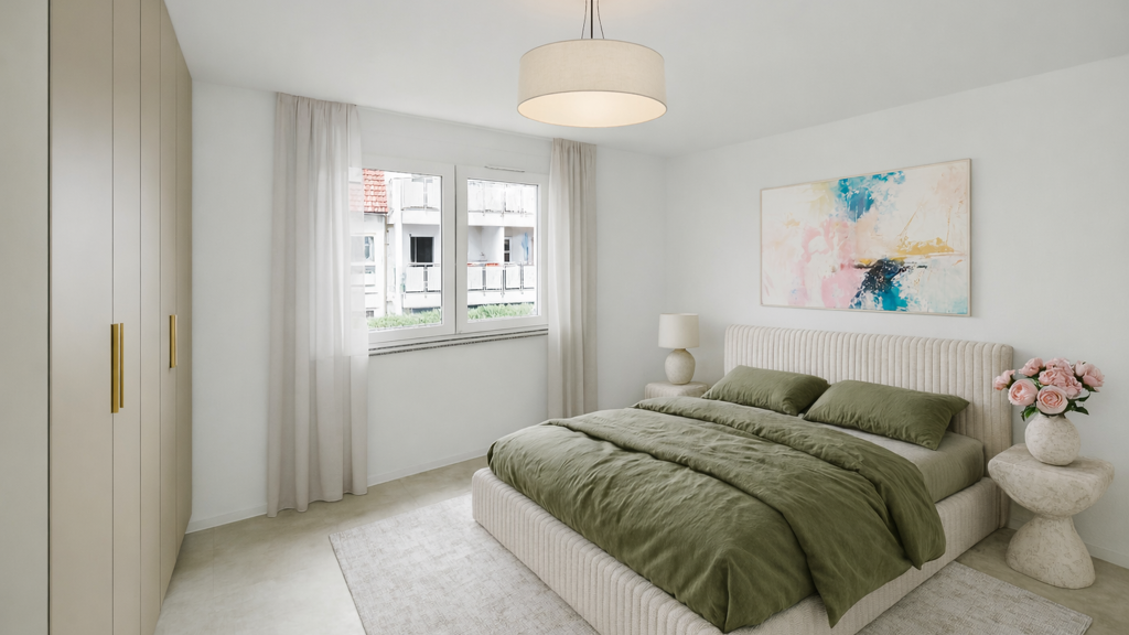 Bei den gezeigten Bildern handelt es sich um Innenraum-Visualisierungen. Diese dienen ausschließlich der illustrativen Darstellung möglicher Möblierungs- und Gestaltungsmöglichkeiten. Die Visualisierungen stellen keine zugesicherten Eigenschaften, keine vertragliche Grundlage und keine verbindliche Beschreibung des Ausstattungsumfangs dar.