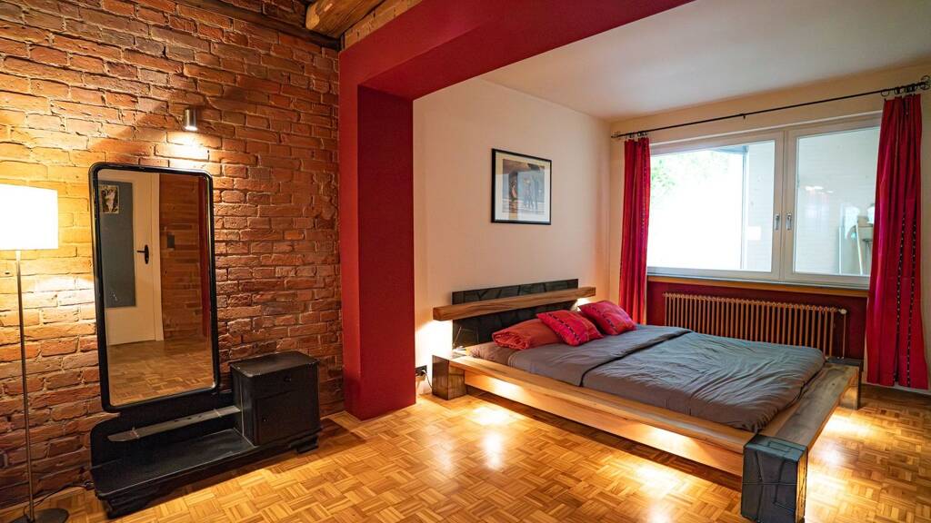 Das durchdachte Raumkonzept erstreckt sich über zwei Ebenen mit insgesamt fünf flexibel nutzbaren Zimmern – ideal zum Wohnen, Arbeiten und kreativen Gestalten. Im Hochparterre erwarten Sie der großzügige Wohn- und Essbereich mit Kaminofen, eine offene Küche (u.a. mit Gasherd) sowie der direkte Zugang zur sonnigen Loggia. Ein modernisiertes Bad (2025) mit Fenster und Dusche sowie praktischer Stauraum ergänzen diese Etage.