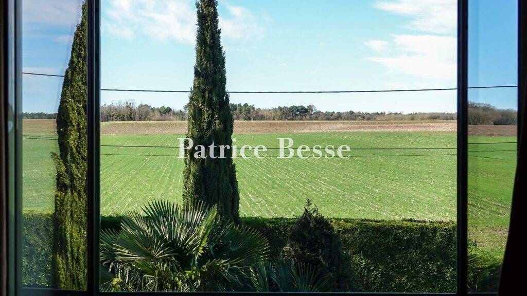 On one side, the entrance hall connects to a reception room. This open-plan reception room is a dual-aspect space. It covers around 100m² and includes a kitchen, a dining room and a lounge. The floors are tiled in neutral tones. Exposed stonework and beams contrast with the orangey-yellow tone of one wall. A semicircular-arched doorway is set in a surround of brickwork. The room is bathed in natural light from glazed doors that lead straight out into the court and, on the garden side, to a covered terrace. On the south side, there is a bedroom, an office and a shower room with a lavatory. A quarter-turn wooden staircase with a metal guardrail leads upstairs. From the entrance hall you can also reach a pantry, a utility room and a lavatory.