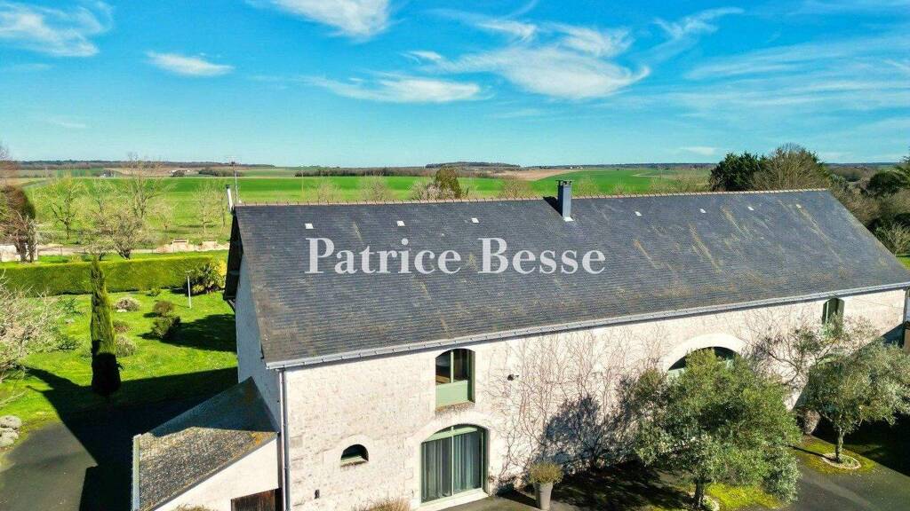 The former barn was once an outbuilding of a 17th-century manor. It is built of tuffeau stone. It has a ground floor and a first floor and is crowned with a gabled slate roof. One main elevation faces north-east and looks out at the garden. The other main elevation faces south-west and looks out at the court. These elevations are punctuated with large glazed doors set in metal frames and arched surrounds. The building was completely renovated at the end of the 2000s with a view to making it more energy efficient. It has two vast reception rooms, an office and five bedrooms, one of which is on the ground floor. The outbuildings include a boiler room, which adjoins the north-west side of the building, and an agricultural storage building with a cellar. One roof slope is fitted with solar panels. The courtyard is tarmacked and the garden, which is partially landscaped, is dotted with several fruit trees. A swimming pool lies in the garden.