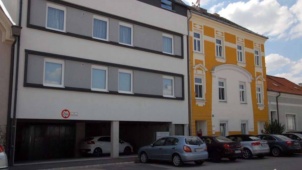 Der Neubau ist unterkellert. Hier befinden sich die Abstellräume für die Wohnungen im Neubau. Weiters sind hier die Garagenplätze untergebracht sowie ein gemeinsamer Technikraum, der gemeinsame Lift sowie der Müllraum. Weitere Abstellplätze gibt es vor dem Haus, die jedoch nicht im Eigentum sind sondern der Gemeinde gehören. Das Zinshaus wird mittels Gas-Zentralheizung geheizt.