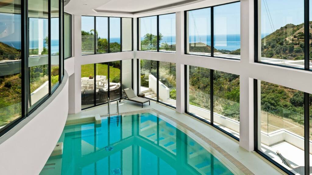 Hanglage, Annehmlichkeiten nahebei, Nahe öffentlicher Verkehrsmittel, Klimaanlage, Komplett eingerichtet, Küche komplett ausgestattet, Waschküche, Jacuzzi, Fitness, Sicherheitseingang, Doppelverglasung, 24Std Sicherheitsdienst, Gästetoilette, Private Terrasse, Küche ausgestattet, Meerblick, Landschaftlicher Ausblick, Bergsicht, Hallenbad, Beheiztes Svhwimmbad, Automatische Bewässerungsanlage, Waschküche, Internet - Wi-Fi, Überdachte Terrasse, Elektrische Rollläden, Einbauschränke, Geschlossene Wohnanlage, Aufzug, Panoramablick , Kinderspielplatz in der Nähe, Nähe Golfplatz, Offene Küche, Balkon, Möbel nach Wahl, SPA, Türkisches Bad, Hervorragender Zustand, Stadtsicht, Salzwasser-Schwimmbad, Nähe Ortszentrum, Nähe Schulen, Überwachungskameras, Haustiere erlaubt