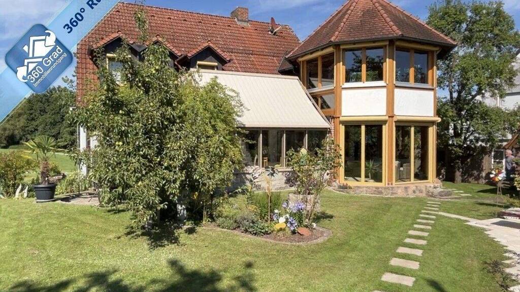 Das wunderschöne und großzügige Zweifamilienhaus wurde 1988 massiv erbaut. Die Gesamtwohnfläche beträgt ca. 290 m². Im Erdgeschoss befindet sich eine 7-Zimmer-Wohnung mit ca. 150 m² Wohnfläche, im Dachgeschoss eine 4-Zimmer-Wohnung mit ca. 101 m² Wohnfläche. Das hochwertig ausgestattete Haus bietet Ihnen viel Platz für zwei Generationen oder die große Familie. Die Immobilie besticht durch ihre durchdachte Raumaufteilung mit insgesamt 13 Zimmern, darunter 5 geräumige Schlafzimmer. Ein Highlight ist der wunderschöne Wintergarten mit automatischer Beschattung und Belüftung. Von hier aus haben Sie einen schönen Blick in den Garten sowie Zugang zur großen Terrasse. 1996 wurde der Wohnbereich durch Dachgauben und einem wunderschönen, lichtdurchfluteten Anbau, sowohl für das Erdgeschoss als auch für das Dachgeschoss, erweitert. Zudem sorgen die beiden Holzöfen für eine behagliche Atmosphäre an kalten Tagen. Ein weiterer Pluspunkt ist, dass das Anwesen 2025 an das neue Nahwärmenetz angeschlossen wurde. Die Badezimmer sind renoviert und zeitgemäß ausgestattet und die gepflegte Einbauküche ist auch dabei. Das Haus ist vollständig unterkellert und bietet hier weitere Räume mit Tageslicht. Die Ölheizung und der Öltank wurden bereits entfernt. Der ehemalige Tankraum wurde renoviert und kann vielseitig genutzt werden. Der Spitzboden der Immobilie ist ebenfalls ausgebaut. Die Doppelgarage mit Wallbox und ausgebautem Dachgeschoss ist direkt mit dem Wohnhaus verbunden. Das sehr schön angelegte Grundstück hat eine Fläche von ca. 700 m². Die PV-Anlage mit 5 kWh und einem Stromspeicher mit 5 kWh spart Ihnen Stromkosten. Die Doppelgarage und ein Carport runden das Gesamtpaket ab. Auf Wunsch kann eine weitere, direkt angrenzende Grundstücksfläche mit ca. 665 m² zusätzlich erworben werden. Diese würde Ihren Garten vergrößern. Die Nutzung ist nach Absprache möglich.