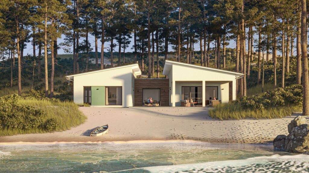 Ein Bungalow ist nicht nur für Singles oder Paare die perfekte Wohnform. Auch Familien kann er viel Komfort bieten. So muss der Kinderwagen nicht mühsam treppauf und treppab getragen werden und es gibt keine Stolperfallen für die Kleinen. Damit sich später alle Bewohner wohlfühlen, sollte genügend Platz eingeplant werden. Mit einer Nettogrundfläche von rund 130 m² entpuppt sich der Entwurf "AMBIENCE 130" als perfektes Familiendomizil für drei. Von außen präsentiert sich das Fertighaus in zeitlos-schönem Gewand: Die beiden versetzten Baukörper hüllen sich in einen strahlend weißen Mineralputz, der von den anthrazitfarbenen Fensterrahmen und dem dunklen Walmdach kontrastiert wird. Großzügige Verglasungen entlang der Gartenseite sorgen für spannende Ein- und Ausblicke. Ein Highlight ist das leicht herausstehende Fenster, das den Erker in Szene setzt.