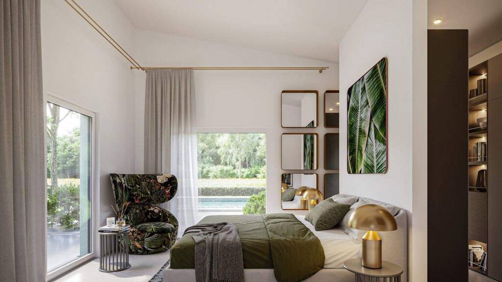 Im Inneren des Bungalows wird Wohnkomfort großgeschrieben. Das zeigt sich bereits am Eingangsbereich: Empfangen werden die Bewohner und Besucher von einer repräsentativen Diele, in der sich auch mehrere Personen gleichzeitig aufhalten können, ohne sich dabei auf die Füße zu treten. Da keine Treppe integriert werden muss, kann der Platz stattdessen für schöne Garderobenmöbel und einen großen Schuhschrank genutzt werden. Links gelangt man in den weitläufigen Wohn-, Ess- und Kochbereich, der viel Raum für eigene Gestaltungsideen lässt. Wie wäre es beispielsweise mit einer langen Theke, die zu einem netten Plausch bei Kaffee und Kuchen einlädt? Oder eine gemütliche Eckcouch, auf der man zusammen mit seinen Lieben die neuesten Serien schauen kann? In der rechten Gebäudehälfte befinden sich die privaten Ruhe- und Erholungsräume der Bewohner. Den Eltern wird ein luxuriöser Wohlfühlbereich aus Schlafzimmer, Ankleide und Bad en suite zur Verfügung gestellt. Der Nachwuchs kann sich über ein gut geschnittenes Kinderzimmer und ein separates Bad mit Dusche freuen. Ergänzt wird das Raumangebot von einem Technikraum sowie einem Abstellraum für Staubsauger und Co. Wird mehr Stauraum benötigt, dann kann der Bungalow auch unterkellert werden.