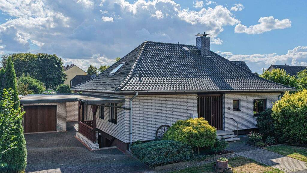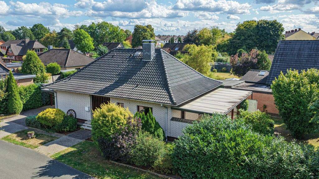 Das schöne Anwesen mit weiß gebrochener Klinkerfassade wurde 1980 auf einem 660 m² beschaulichen Grundstück errichtet. Der Bungalow besticht durch die ruhige Lage, den gepflegten Zustand und das moderne Erscheinungsbild.