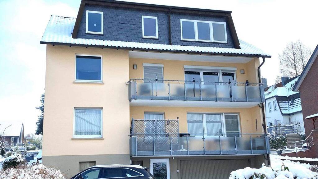 Ferner wurden die Wohnungsinnentüren, viele Rippenheizkörper und das Heizöllager in 2003 ausgetauscht. Die drei raumhoch und hell gefliesten Tageslichtbäder sind ca. 1993/1994 (EG), 1998 (1. OG) und 2023 (DG) modernisiert worden und jeweils mit Badewanne, Einzelwaschbecken und WC ausgestattet. Das helle und gepflegte Treppenhaus verfügt über ansehnliche Terrazzostufen. Die Böden in Fluren, Küchen und Bädern sind mit pflegeleichten Keramikbelägen gefliest, die Wohn- und Schlafzimmer mit fußwarmem Vinyl oder Laminat ausgelegt. Die Elektroinstallationen, Wasser- und Abwasserleitungen wurden in den Wohnungen im Zeitraum von 1998 bis 2025 umfassend erneuert.