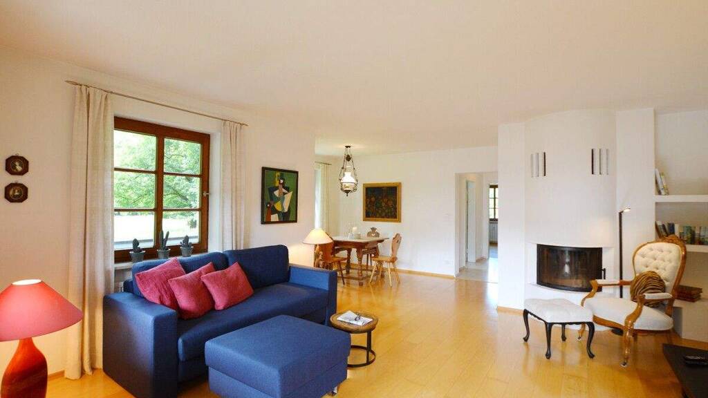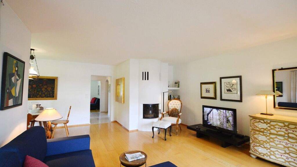 Der großzügige Wohnbereich mit gemütlichem Kamin bildet das Herzstück der Wohnung. Im Erker befindet sich der der einladende Essbereich - ein besonderer Ort der zum Verweilen und Genießen einlädt. Die separate Küche ist voll ausgestattet. Das Hauptschlafzimmer ist mit einem Doppelbett ausgestattet, während ein zweites Zimmer mit Schlafsofa sowohl als weiterer Schlafplatz als auch als Arbeitsbereich genutzt werden kann. Das moderne Badezimmer überzeugt mit viel Platz, einem Doppelwaschbecken sowie einer großzügigen Regendusche. Die Sauna, welche im Keller des Mehrfamilienhauses gegen Gebühr angeboten wird, sorgt für zusätzlichen Komfort.