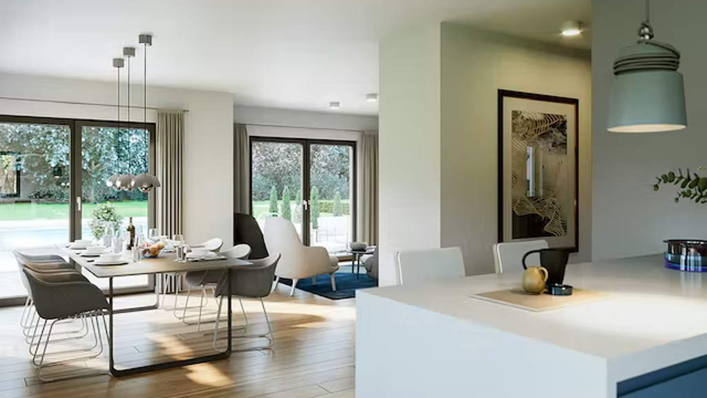 Kurze Bauzeiten, innovative Haustechnik, attraktive Architektur und hochwertige Manufaktur-Qualität bietet Ihnen das angebotene Schwabenhaus im "Blue-Edition" All-Inclusive-Paket: