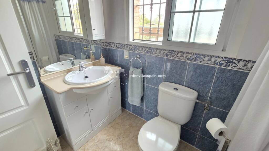 Das Haus besteht aus Wohnzimmer mit Essbereich, 3 Schlafzimmern mit Einbauschränken, 2 Bädern (eins davon ensuite), einer großzügigen, voll ausgestatteten offenen Küche mit Cerankochfeld, Ofen, Geschirrspüler, Kühlschrank und einer Hintertür, einer großen Terrasse mit Brüstung und Markisen, Wäscheraum und Solarium. Die Unterkunft wird teilweise möbliert verkauft.
