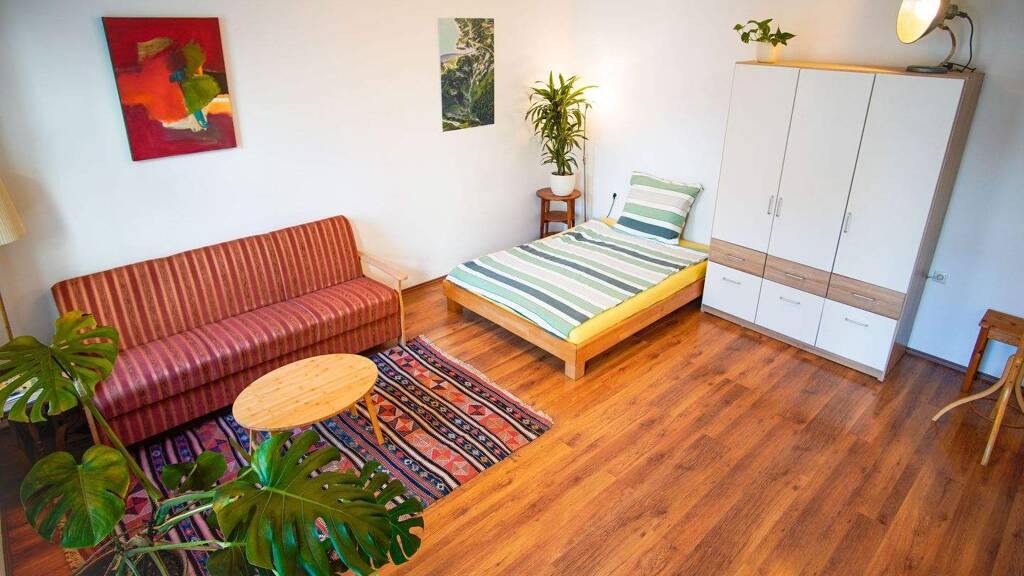 Die Wohnung liegt im 3. Liftstock eines Altbaus und ist in einen großen Hinterhof nach Osten orientiert. Badezimmer und Toilette sind getrennt. Komplett neue Badezimmerausstattung mit neuer Duschkabine, Alibert und Waschbecken. Eine gemütliche Wohnküche mit Weitblick in den Hinterhof. Darin befindet sich ein ganz neuer Kühlschrank, Gasherd und Elektrobackofen und Waschmaschine. Das Wohn- und Schlafzimmer ist mit einem Doppelbett aus Buchenvollholz, einem ausklappbaren Couchbett, einem großzügigen Kleiderschrank und einem Arbeitstisch ausgestattet. Das Wohn- und Schlafzimmer hat 2 Fenster mit Weitblick in den Hinterhof. Alle Fenster sind mit lichtdichten Rollos ausgestattet, damit kann man dann auch nach Sonnenaufgang noch gut schlafen. Fahrradabstellplätze befinden sich in der überdachten Garage mit stufenlosem Zugang im Erdgeschoss. Das Haus liegt direkt am verkehrsberuhigten Brigittaplatz und befindet sich damit in einer der schönsten Gegenden im aufstrebenden 20. Bezirk, direkt neben der denkmalgeschützten Kirche und dem alten Amtshaus. Die Heizung wurde vor zwei Jahren erneuert und wird weiterhin jährlich vom Fachmann überprüft und gewartet.