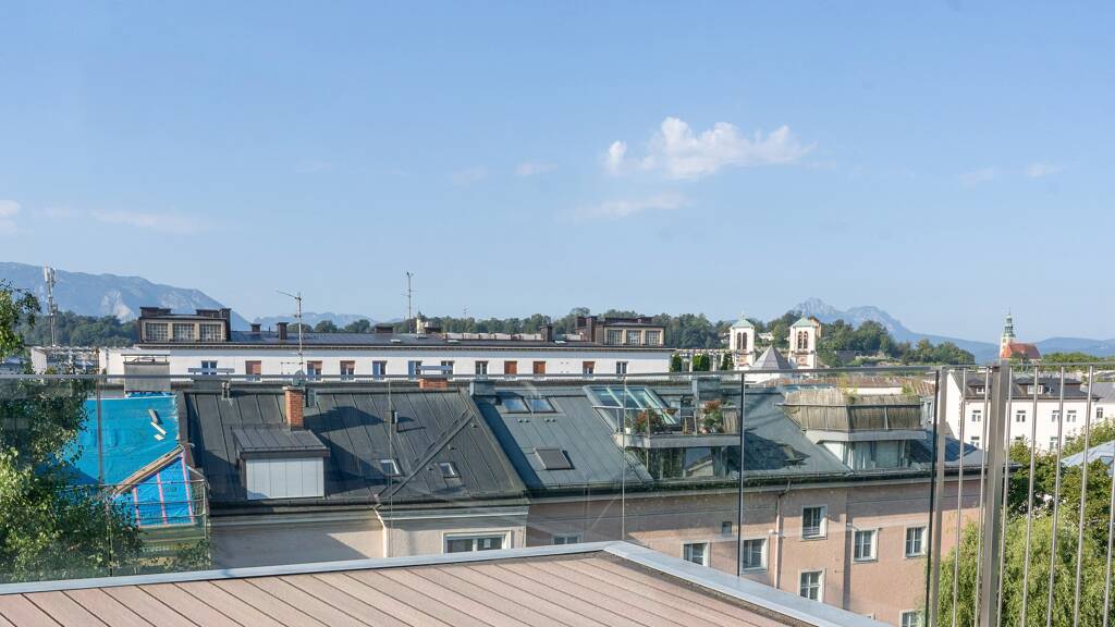Die großzügige, lichtdurchflutete Wohnung erstreckt sich über das gesamte Dachgeschoss und bietet mit ihren sechs Zimmern ein luxuriöses Wohnambiente, das höchsten Ansprüchen gerecht wird. Sie vereint historischen Charme mit modernem Komfort auf beeindruckende Weise. Das Herzstück der Wohnung bildet die neu errichtete, rund 20 m² große Dachterrasse, die Ihnen ein unvergleichliches Wohnerlebnis in luftiger Höhe ermöglicht. Hier können Sie in absoluter Privatsphäre spektakuläre Sonnenauf- und -untergänge genießen und dabei einen fast 360-Grad-Blick über die zauberhafte Stadt Salzburg und die majestätische Bergkulisse schweifen lassen.