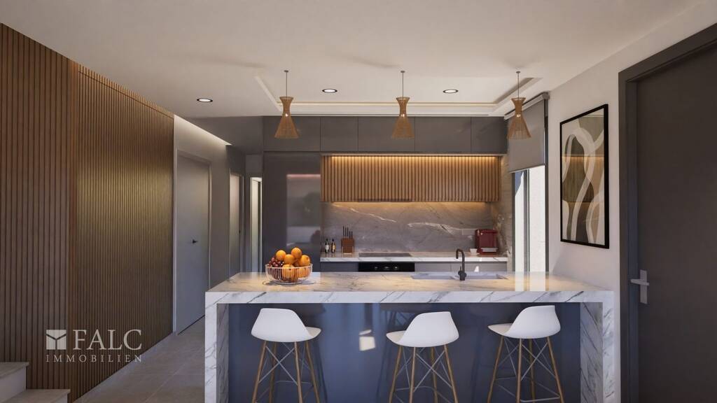 Dieses Neubauprojekt steht für zeitgenössische Architektur und höchste Bauqualität. Die Fassade beeindruckt durch eine Kombination aus weißem Monolayer-Putz und edlen Feinsteinzeug-Elementen der renommierten Marke TAU. Große Fensterfronten aus dunkelgrauem, thermolackiertem Aluminium sorgen durch thermische Trennung und Sonnenschutzverglasung für ein optimales Raumklima und ein modernes Erscheinungsbild. Jedes Detail wurde sorgfältig geplant, um ein luxuriöses und zugleich nachhaltiges Wohnerlebnis zu schaffen.