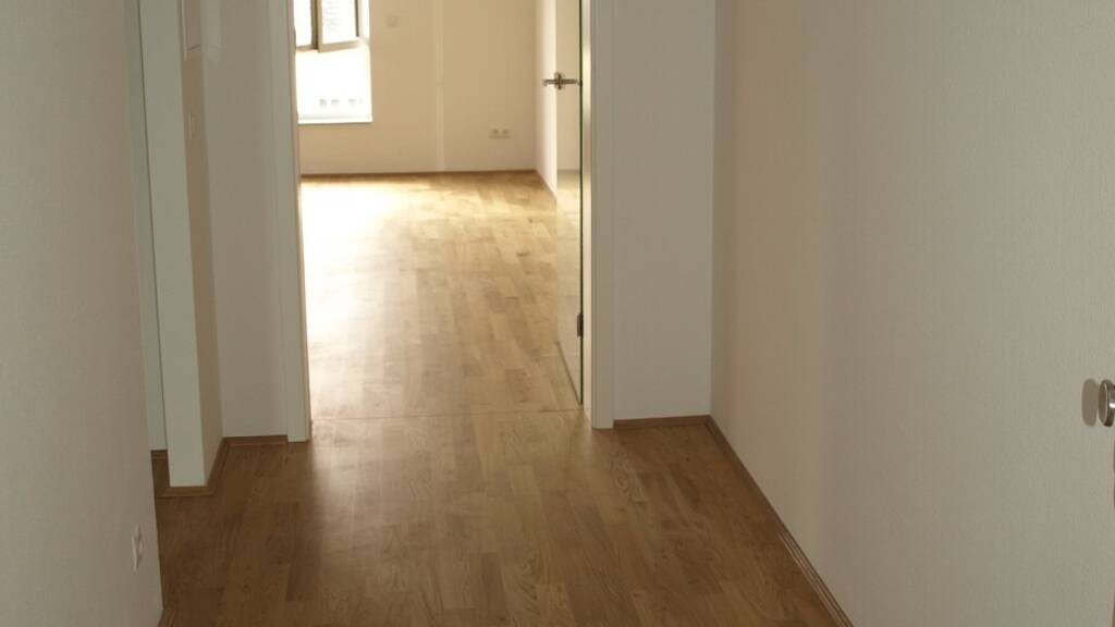 Beim Betreten der Wohnung gelangen Sie in den Eingangsbereich mit einer praktischen Garderobenecke auf der linken Seite. Vom Flur aus sind das Badezimmer sowie das Schlafzimmer erreichbar.