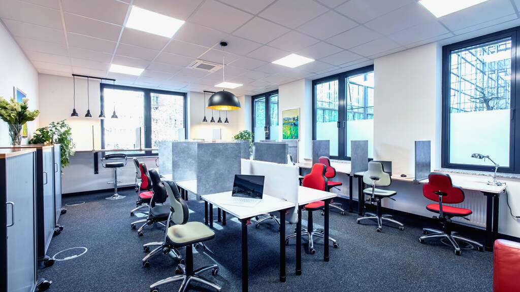 Die ÖPNV-Anbindung ist also bestens und mit dem Auto erreichst du alle Autobahnen in wenigen Minuten. Selbstverständlich bieten wir ausreichend Tiefgaragenplätze im Gebäude auch für deine Besucher. Büros nach Maß Wir haben auch dein Wunsch-Büro, falls du lieber im privaten Büro arbeitest, um z.B. dem einsamen und ablenkungsreichen Home Office zu entfliehen. Oer um als Arbeitgeber deinen Remote Workern den gesetzlich vorgeschriebenen Vor-Ort-Büroarbeitsplatz zu bieten. Vom Einzelbüro bis zum geräumigen Team-Büro für 10 und mehr Personen. Wir haben für dich verschiedenste Raumgrößen von 1-20 Mitarbeiter. Oder du kombinierst mehrere Räume ganz nach Wunsch. Natürlich komplett möbliert und inklusive schneller Internetverbindung. Verbinde deinen PC oder Laptop einfach per LAN oder WLAN, bringe deine Akten und Unterlagen mit (Boxen und Mobilschränke kannst du optional dafrü mieten) und schon bist du startbereit. Denn alles, was du für effizientes Arbeiten benötigst, ist stets sofort abrufbereit.