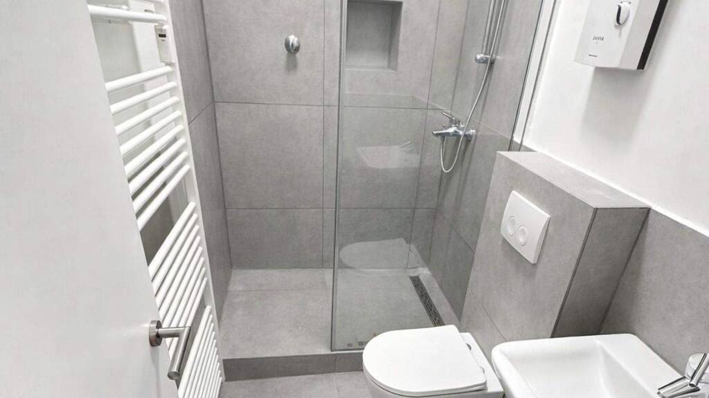- Hochwertiges Badezimmer mit Handtuchwärmer und wandhängendem WC