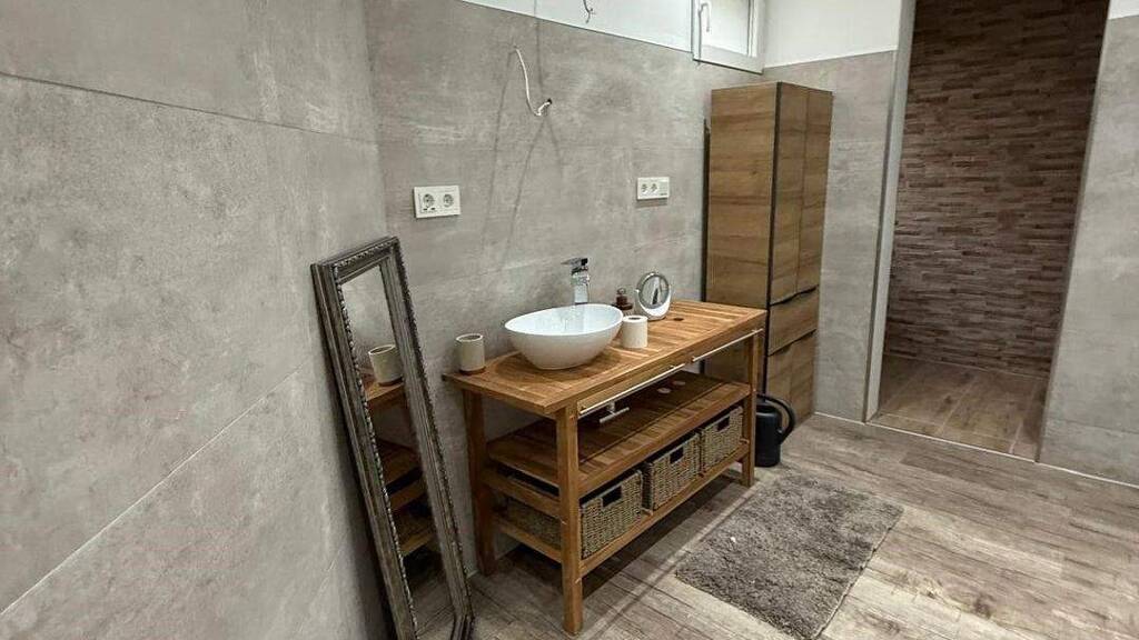 Die Immobilie verfügt über insgesamt 2 Zimmer, darunter 1 Schlafzimmer, große Küche mit Essbereich und Innenhofzugang. Die Böden sind mit hochwertigem Belag ausgelegt und sorgen für eine warme und gemütliche Atmosphäre. Die Küche ist modern und voll ausgestattet mit allen notwendigen Elektrogeräten. Das Badezimmer ist mit einer riesigen Dusche ausgestattet, sowie einem Waschbecken und einem WC.