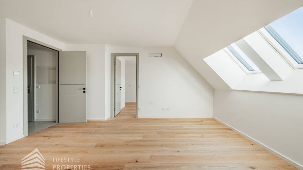 Wir freuen uns, Ihnen die Gelegenheit vorstellen zu dürfen, eine brandneue 2-Zimmer-Wohnung zu erwerben, die im Jahr 2024 fertiggestellt wurde. Diese moderne Wohnung befindet sich im 1. Dachgeschoss und ist bequem über einen Lift erreichbar. Diese bietet alle Vorteile eines Erstbezugs. Das gesamte Gebäude wird umweltfreundlich und effizient mittels einer Wärmepumpe beheizt, und eine Fußbodenheizung sorgt für angenehme Wärme in der gesamten Wohnung. Zudem besteht die Möglichkeit, die Garagenabstellplätze um 25.000 Euro zu erwerben. Der Wohnung ist ein Kellerabteil zugeordnet.