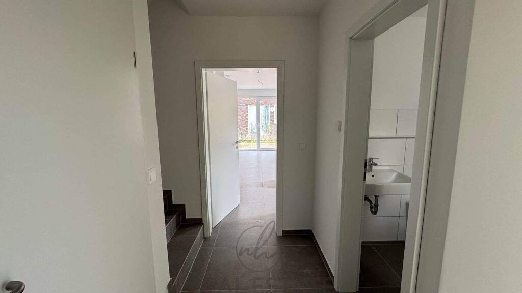 Im Erdgeschoss erwarten Sie ein Gäste-WC, ein praktischer Hauswirtschaftsraum für den Wasserspeicher der Luftwärmepumpe sowie der offene Wohn- und Küchenbereich mit direktem Zugang zur sonnigen Terrasse – ideal für entspannte Stunden im Freien.