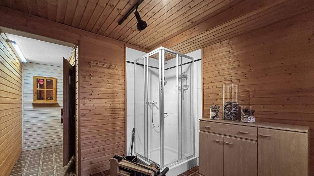 Das Untergeschoss bietet mit der separaten Einliegerwohnung viele weitere Nutzungsmöglichkeiten. Diese ist über einen eigenen Eingang zugänglich und umfasst einen großzügigen Wohn- und Schlafbereich, eine Diele, ein Badezimmer, eine kleine Terrasse sowie einen Raum, der als Küche genutzt werden kann. Diese Einheit eignet sich sowohl für Gäste als auch für eine Vermietung. Des Weiteren gibt es im Untergeschoss eine Sauna mit Dusche im Sportraum, die zu Erholung und Entspannung einlädt. Im Untergeschoss befinden sich zudem die Waschküche, der Heizraum, das Öllager, ein zusätzlicher Lagerraum sowie ein großzügiger Kellerraum, der ideal als Hobbyraum oder weiterer Abstellraum genutzt werden kann.
