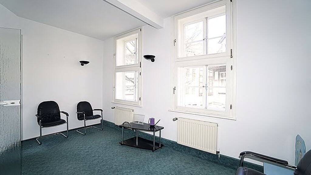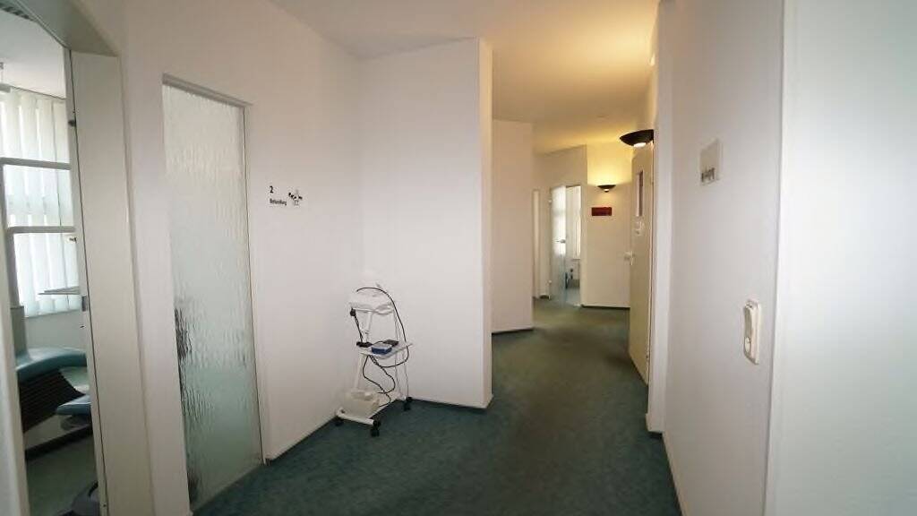 Fassade: Fachwerk Dach: Satteldach mit Dachgauben/ außenliegende Rinnen und Fallrohre Wände/Bodenbeläge: PVC-Belag, Warte- und Empfangsraum sowie Flur mit Teppichbelag. Bäder gefliest. Fenster: Doppelfenster aus Holz mit Sprossung, Innen mit Isolierverglasung, Außen mit Einfachverglasung. Heizung: Gas-Etagenheizung Energieausweis: entfällt, Ausnahmetatbestand GEG Sanitär: Patienten- und Mitarbeiter-WC. Jeweils einfache Ausstattung mit Handwaschbecken Elektroinstallation: einfache Elektroinstallationen Türen: einfache Holztüren, Behandlungsräume mit Glastüren. Hauseingang/Treppenhaus: Hauseingangstür aus Holz mit Glasausschnitt, massive Geschosstreppen mit Zwischenpodesten und Metallgeländer.