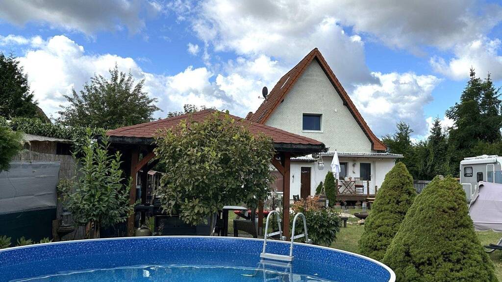 Zum Verkauf steht ein Einfamilienhaus mit Holzgartenhaus und Carport, ruhig gelegen auf einem 792 m² großen Grundstück in Stadtrandlage.
