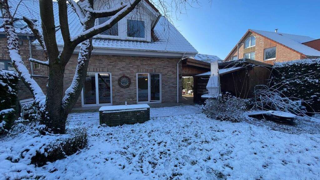 Zusätzliche Nutzfläche bietet der wohnlich ausgebaute Spitzboden, der nicht in der Wohnfläche enthalten ist und vielseitig genutzt werden kann. Die Klinkerfassade unterstreicht die solide Bauweise des Hauses. Ein Carport, ein Gartenhäuschen sowie der gepflegte Garten runden dieses Angebot ab.