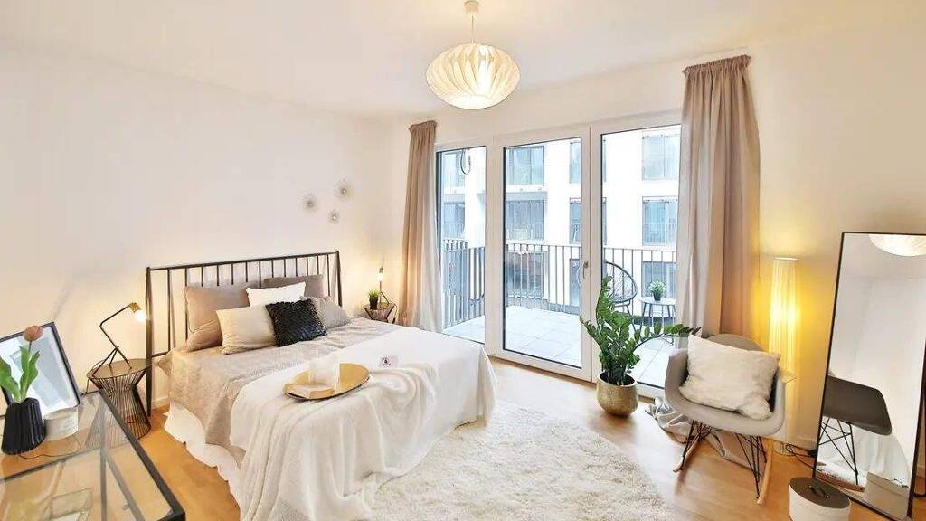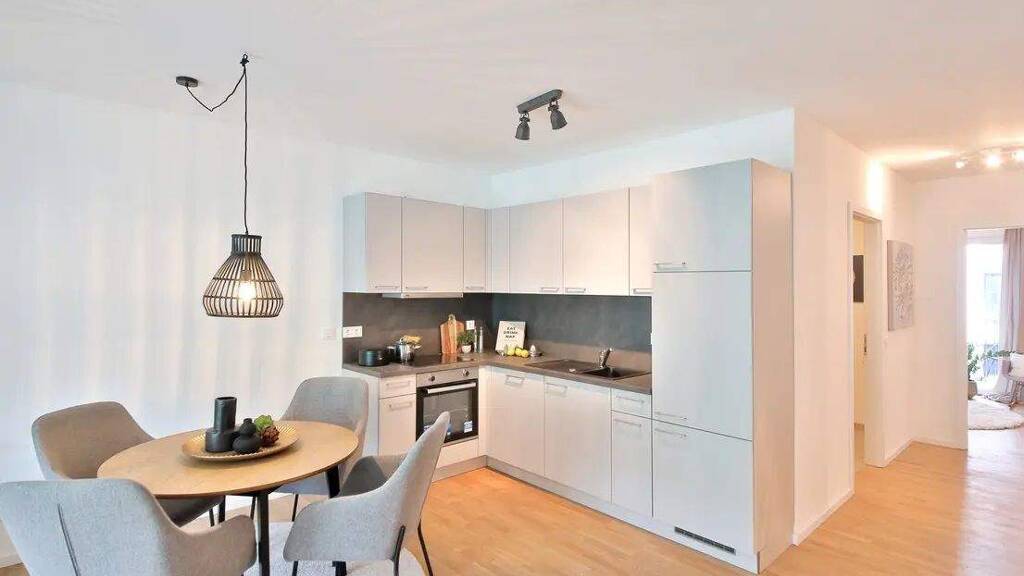 Das im Jahr 2023 errichtete Wohn- und Geschäftshaus im KfW55-Standard mit fünf Gewerbeeinheiten verfügt über insgesamt 5-6 Geschosse. Die Beheizung erfolgt über Fernwärme. Glasfaser ist selbstverständlich vorhanden. In der Tiefgarage stehen ausreichend Tiefgaragenplätze, Fahrradräume, Kinderwagenabstellräume sowie Mieterkeller zur Verfügung. Preise: Duplex-Parker 90 € + 10 € NK-Pauschale; Standard-Stellplätze 100 € + 10 € NK-Pauschale. Die drei zusammengesetzten Gebäudeteile werden mittels insgesamt sechs zentralen größtenteils barrierefreien Erschließungskernen mit Treppenhaus und Aufzug erschlossen. Der Gebäudekomplex umfasst 109 Wohneinheiten, von denen einige Einheiten barrierefrei ausgelegt sind. Die Größe der Wohnungen variieren zwischen 35 m² und 115 m² und verfügen über ein bis drei Zimmer. Jede Wohnung verfügt über eine Wohnküche, ein Bad (teilweise mit Tageslicht), sowie einen Balkon oder einer Terrasse.