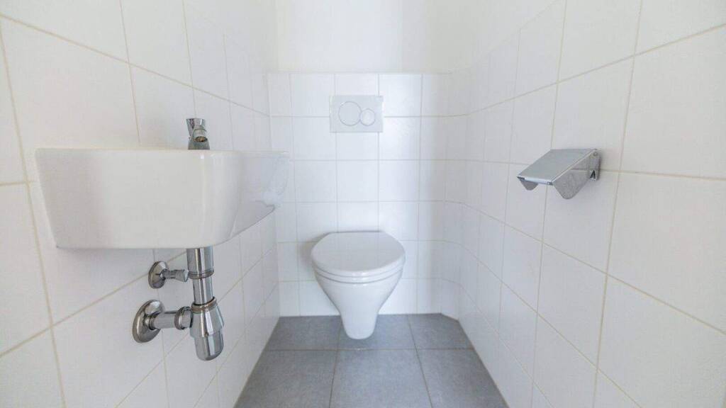 * Separates WC: Mit Handwaschbecken, bequem vom Vorraum aus zugänglich.
