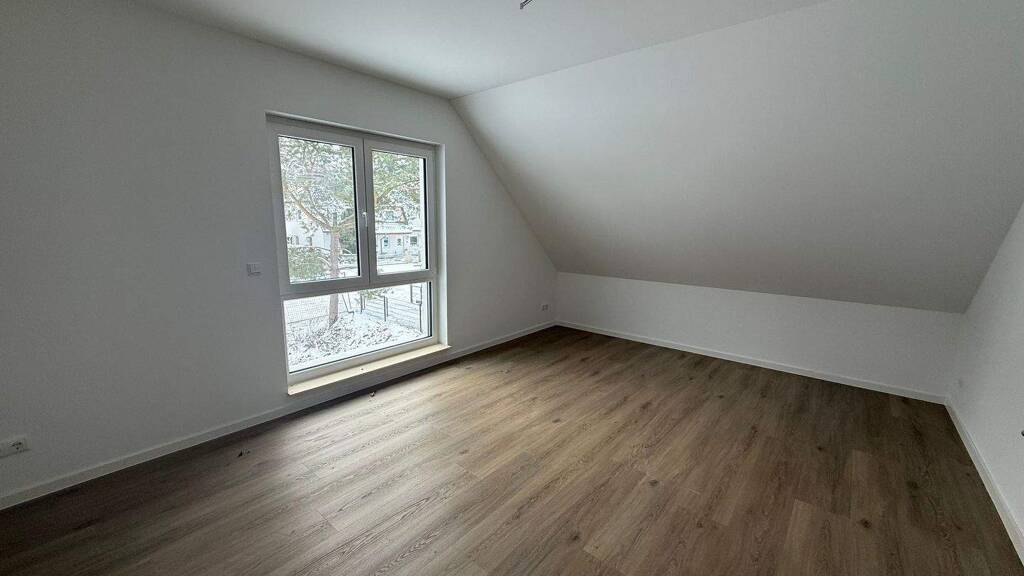 Die Doppelhaushälfte wird über eine Luft-Wärmepumpe mit Wärme und Warmwasser versorgt. Die hochwertige Ausstattung des Hauses beinhaltet unter anderem eine Fußbodenheizung mit separater Steuerung für jedes Zimmer, hochwertige Kunststofffenster mit Dreifachisolierverglasung (ausgerüstet mit Sparlüftung und Fehlbedienungssperre), Rollläden sowie eine Hauseingangstür in stabiler Ausführung mit Schmuckfüllung und Krallenverriegelung. In den Bereichen Elektro-, Heizung und Sanitärausstattung kommen hochwertige Markenprodukte zum Einsatz. Das Bad ist mit ebenerdiger Dusche, Badewanne, Waschbecken, WC und Handtuchtockner ausgestattet und geschmackvoll gefliest. Die Fußböden werden mit hochwertigem Vinyl-Designbelag gestaltet.