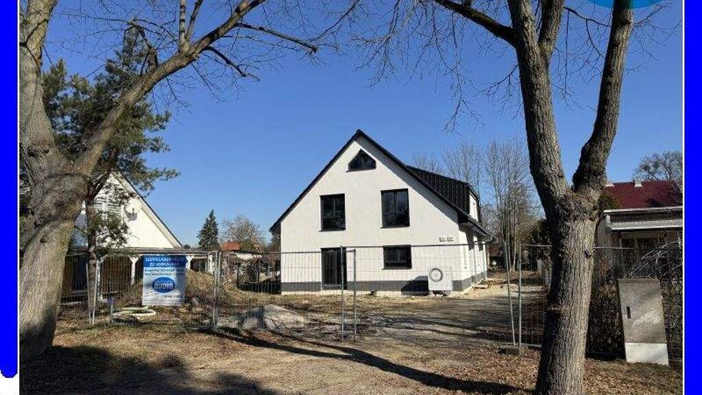 Auf dem insgesamt 818 m² großen Grundstück in ruhiger Wohnlage entstand ein modernes Doppelhaus. Die Ansicht des Hauses wird durch Dachgauben, großzügige Fenster und eine attraktive Fassadenfarbe sehr geschmackvoll und zur Wohnumgebung passend gestaltet. Das vordere Grundstück verfügt über eine Größe von ca. 433 m². An der rechten Grundstücksseite sichert auf einer Breite von 3 Metern ein Geh-, Fahr- und Leitungsrecht die Erschließung und Erreichbarkeit des hinteren Grundstücks. Das Wohnhaus wurde in massiver Bauweise- Stein auf Stein- errichtet. Moderne Haustechnik und der Wärmeschutz gewährleisten einen hohen Wohnkomfort und niedrige Heizkosten. Die gut durchdachten Grundrisse bieten auf zwei Etagen ausreichend Platz für eine Familie. Die vordere Doppelhaushälfte hat eine Wohn-/ Nutzfläche von ca. 148 m². Vom großzügigen Flur gelangt man in das helle Wohnzimmer mit einer Größe von ca. 30 m². Zwei doppelflügelige Terrassentüren lassen viel Tageslicht herein und ermöglichen den Zugang zur Sonnenterrasse und in den Garten. An das Wohnzimmer schließt die offen gestaltete, geräumige Küche an, die zusätzlich über einen Zugang vom Flur verfügt. Hier kann ein gemütlicher Essplatz für die ganze Familie eingerichtet werden. Ein Hauswirtschaftsraum und ein Gäste-WC vervollständigen das Erdgeschoss. Im Obergechoss befinden sich drei helle, gut geschnittene Zimmer und das Familienbad mit ebenerdiger Dusche und Badewanne. Der Spitzboden ist ausgebaut und sehr gut als Hobby- oder Arbeitszimmer geeignet. Die über Eck angelegte, nach Süden und Südwesten ausgerichtete Terrasse bietet einen schönen Blick über den eigenen Garten. Auf dem Grundstück werden zwei PKW- Stellplätze und eine Terrasse errichtet. Wünsche der Käufer können dabei berücksichtigt werden. Die Außenanlagen werden vorbereitet, so dass die eigenen Ideen zur Gartengestaltung schnell umgesetzt werden können..